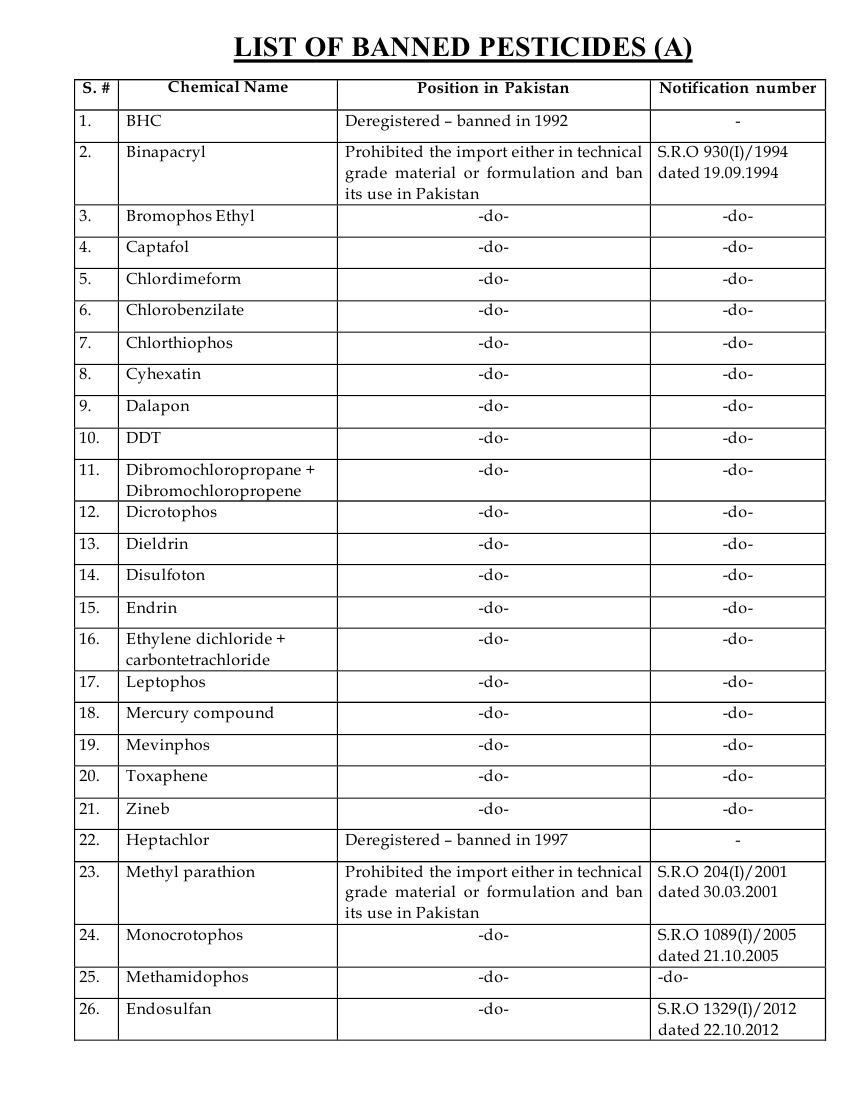 巴基斯坦公布新的禁止使用(进口)的农药清单